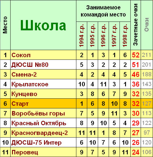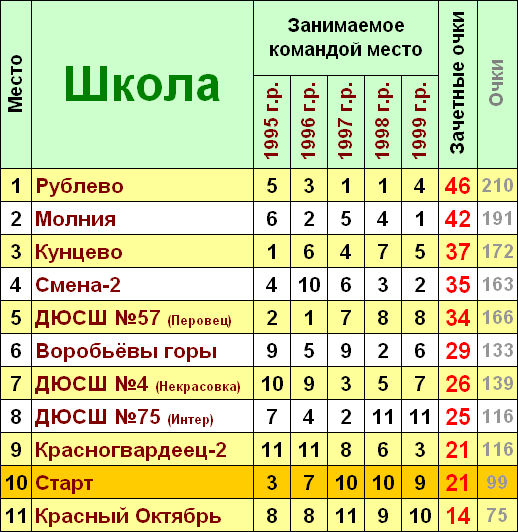 Первенство проводится по четырем группам (Клубная лига, Премьер-группа, Высшая группа, Первая группа). Составы групп формируются по спортивному принципу (Рейтингу) согласно итогам предыдущего сезона. Участники Первенства Москвы по футболу всех групп выставляют команды 8 возрастов. Зачетные по возрастам команды: 1-е юноши, 2-е юноши, 3-е юноши, 1-е мальчики, 2-е мальчики. Команды 3-х младших возрастов проводят отдельные соревнования на призы Федерации в своей группе по календарю зачетных по возрастам команд. Итоговые места футбольных школ в группах (школьный зачет) определяются по рейтингу 5-ти команд зачетных возрастов в зависимости от занятых мест.